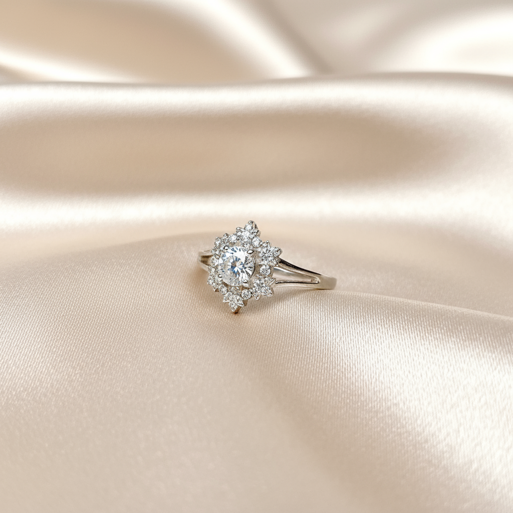 925 Pure Silver Round Cut CZ Statement Ring