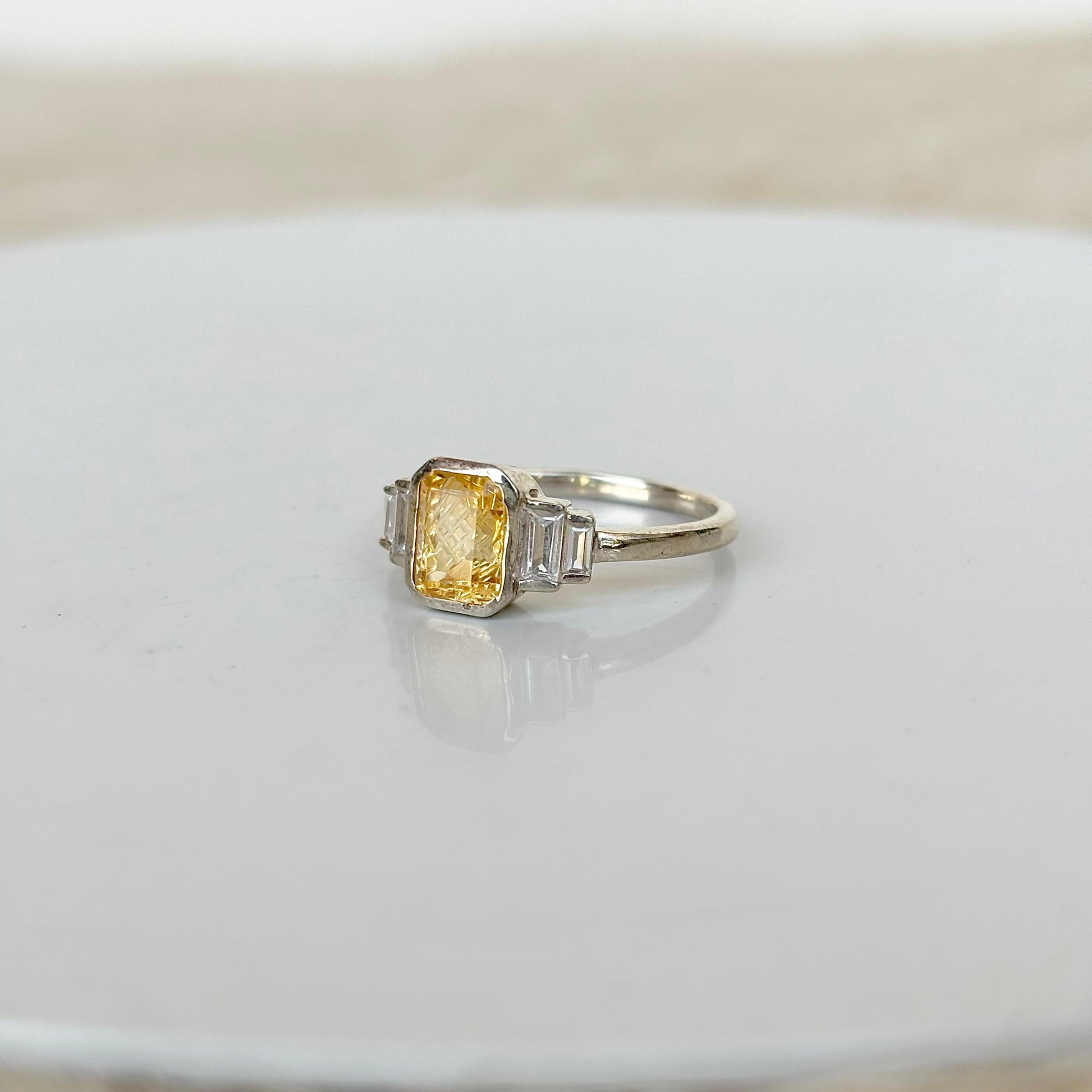925 Pure Silver Baguette Carved Citrine Birthstone Ring