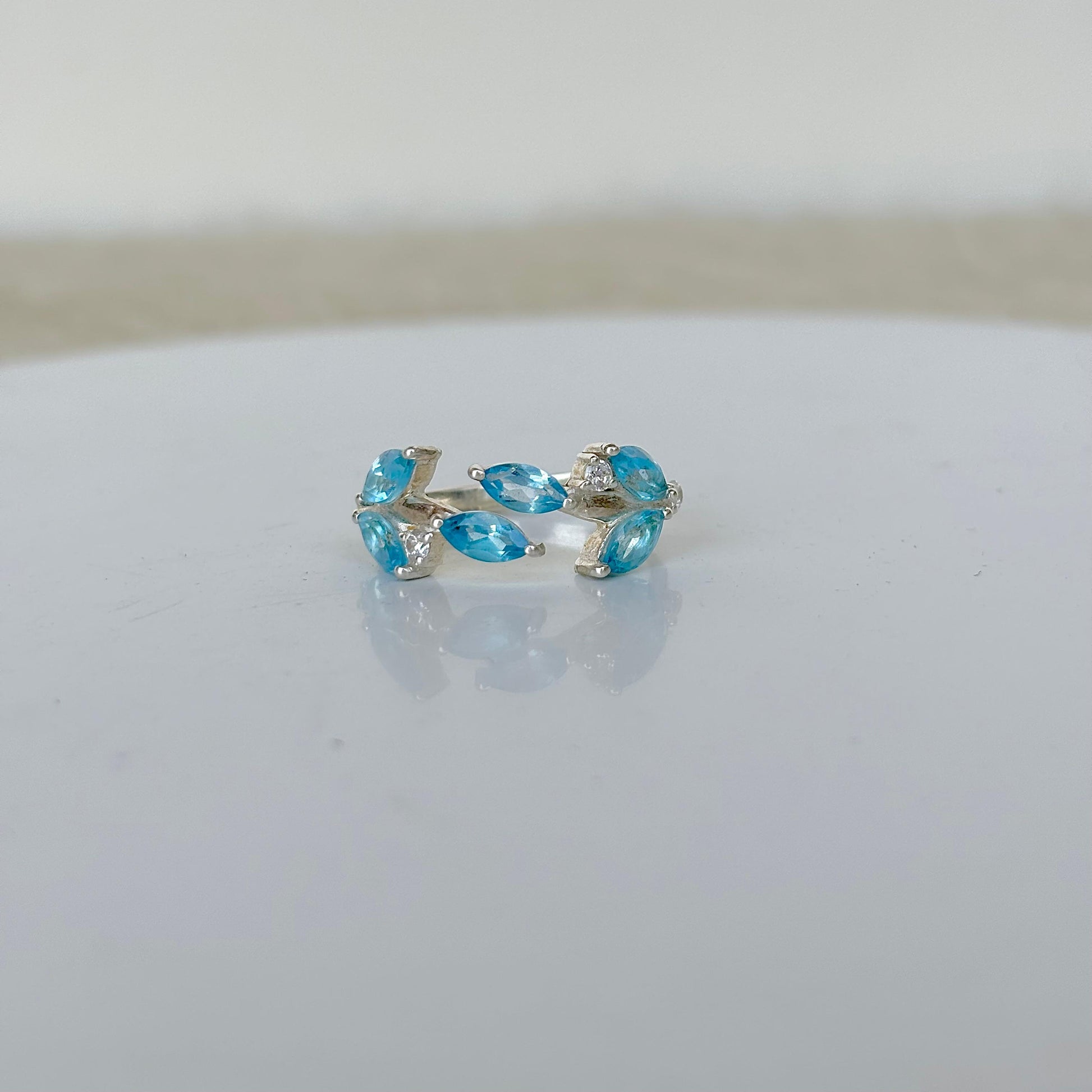 Elevate your style with our stunning 925 Sterling Silver Natural Sky Blue Topaz Adjustable Ring. This exquisite piece features six blue topaz marquise stones beautifully arranged in a leaf design.