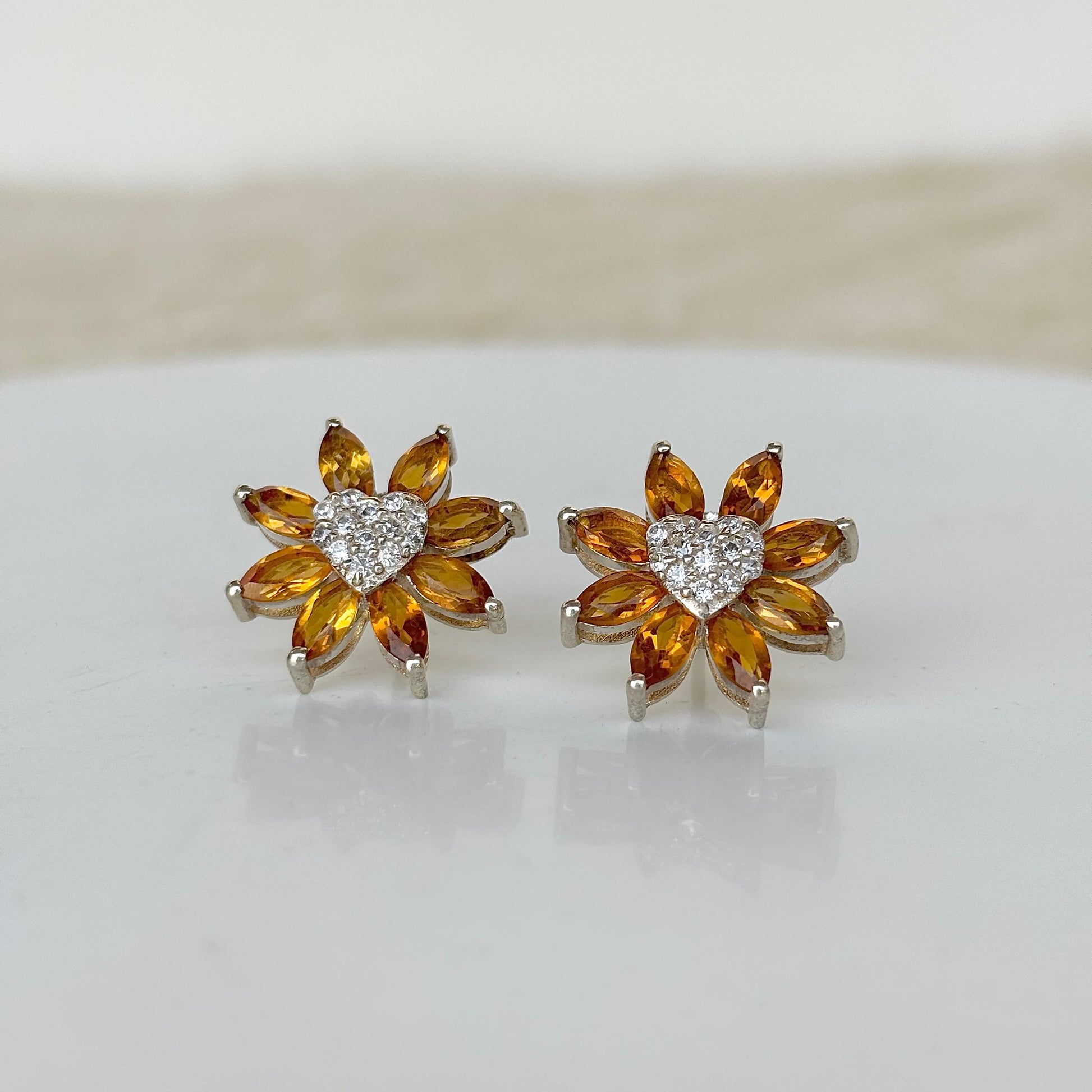 Step into a world of radiant warmth with our Citrine Flower Stud Earrings – a fusion of elegance and positivity. These 925 Sterling Silver studs showcase a timeless design, delicately fashioned into a flower shape with a heart at the center. Versatile and chic, they effortlessly enhance your everyday style.