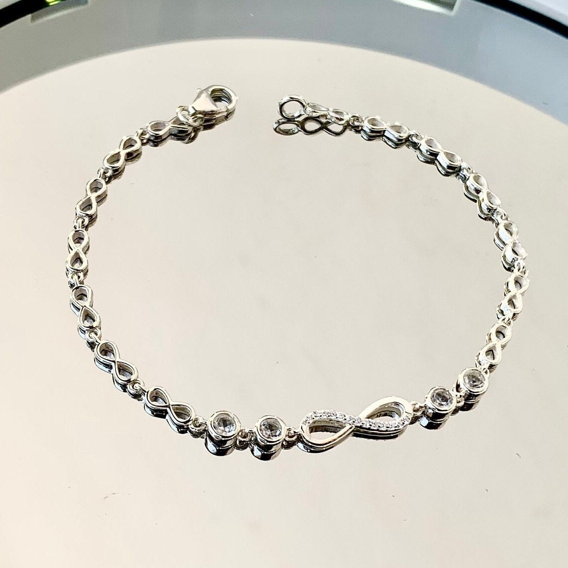 925 Pure Silver Dainty Infinity Cubic Zircon Dazzling Bracelet