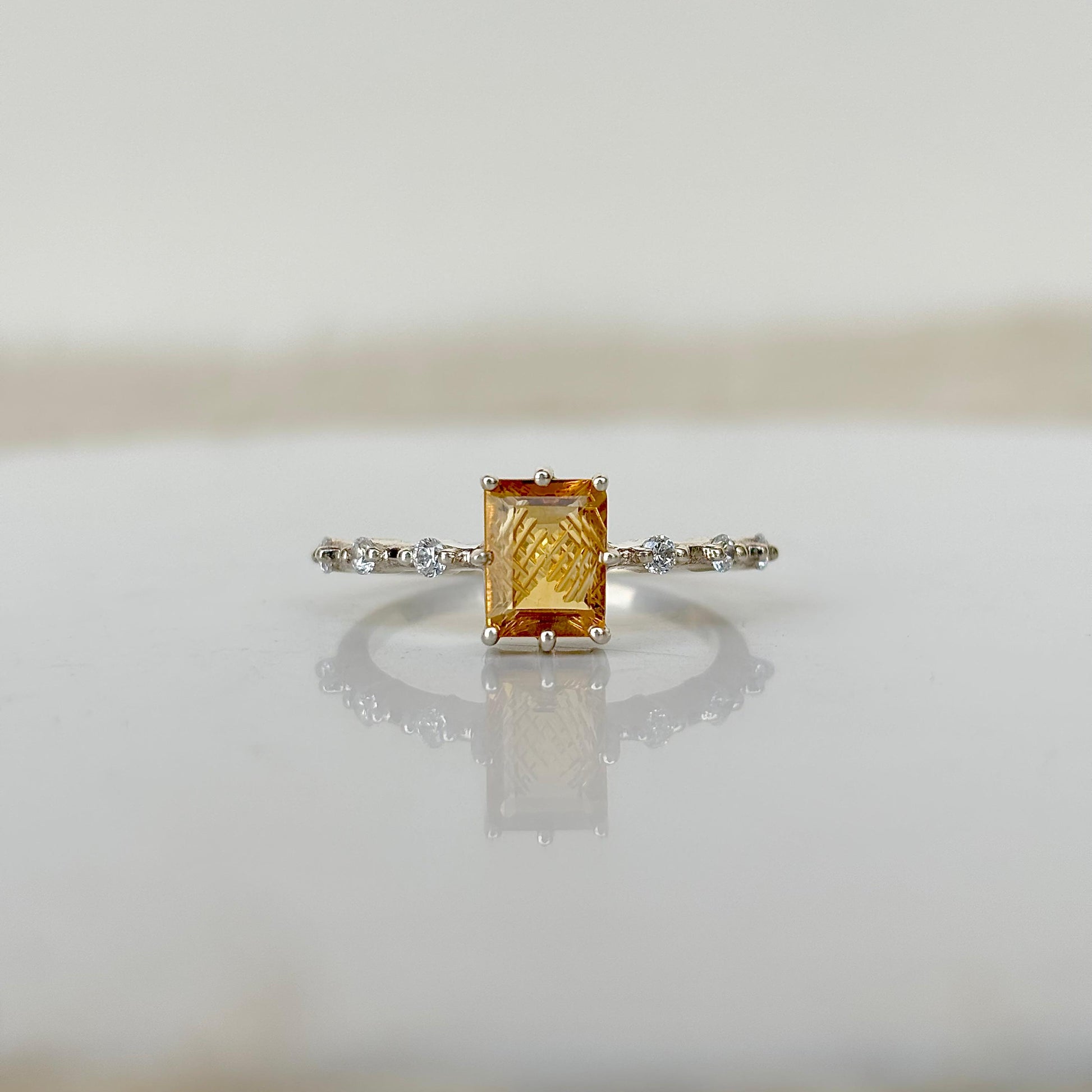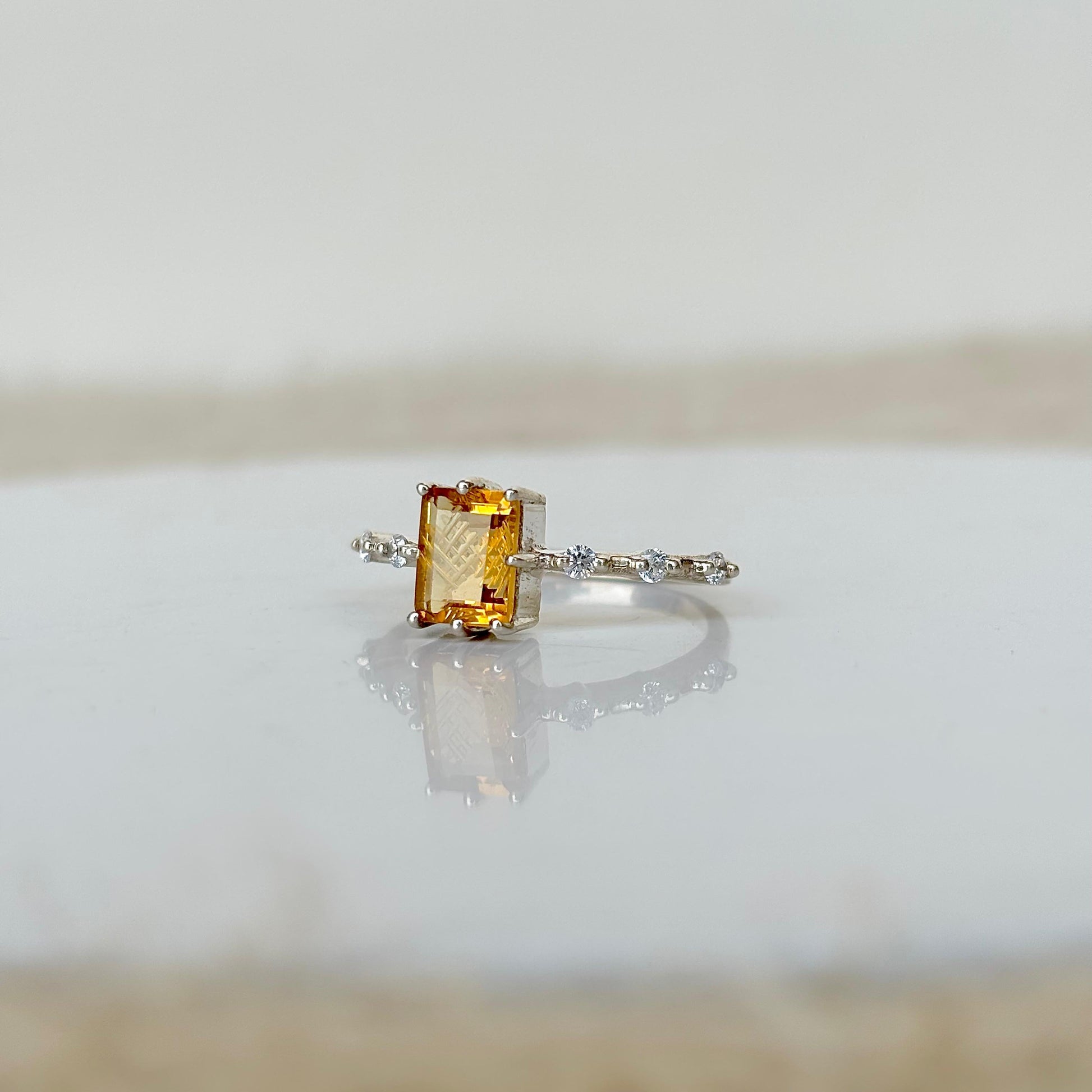 Elevate your style with our Handcrafted Citrine Birthstone Ring. Its exquisite baguette emerald cut, adorned with a carved gemstone, captures the essence of elegance. Crafted from genuine 925 sterling silver, this unique piece of women's jewelry is a celebration of November's birthstone.