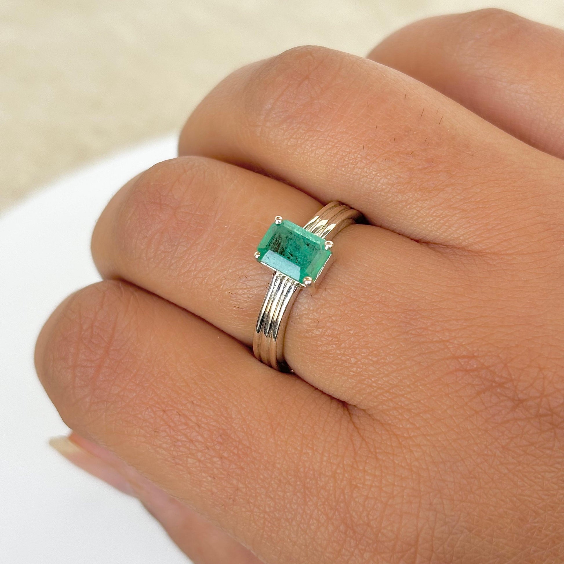 Experience the timeless elegance of our Natural Emerald Ring, a tribute to the beauty of May's birthstone. Set in high-quality 925 sterling silver, the ring exudes a sense of sophistication and grace.