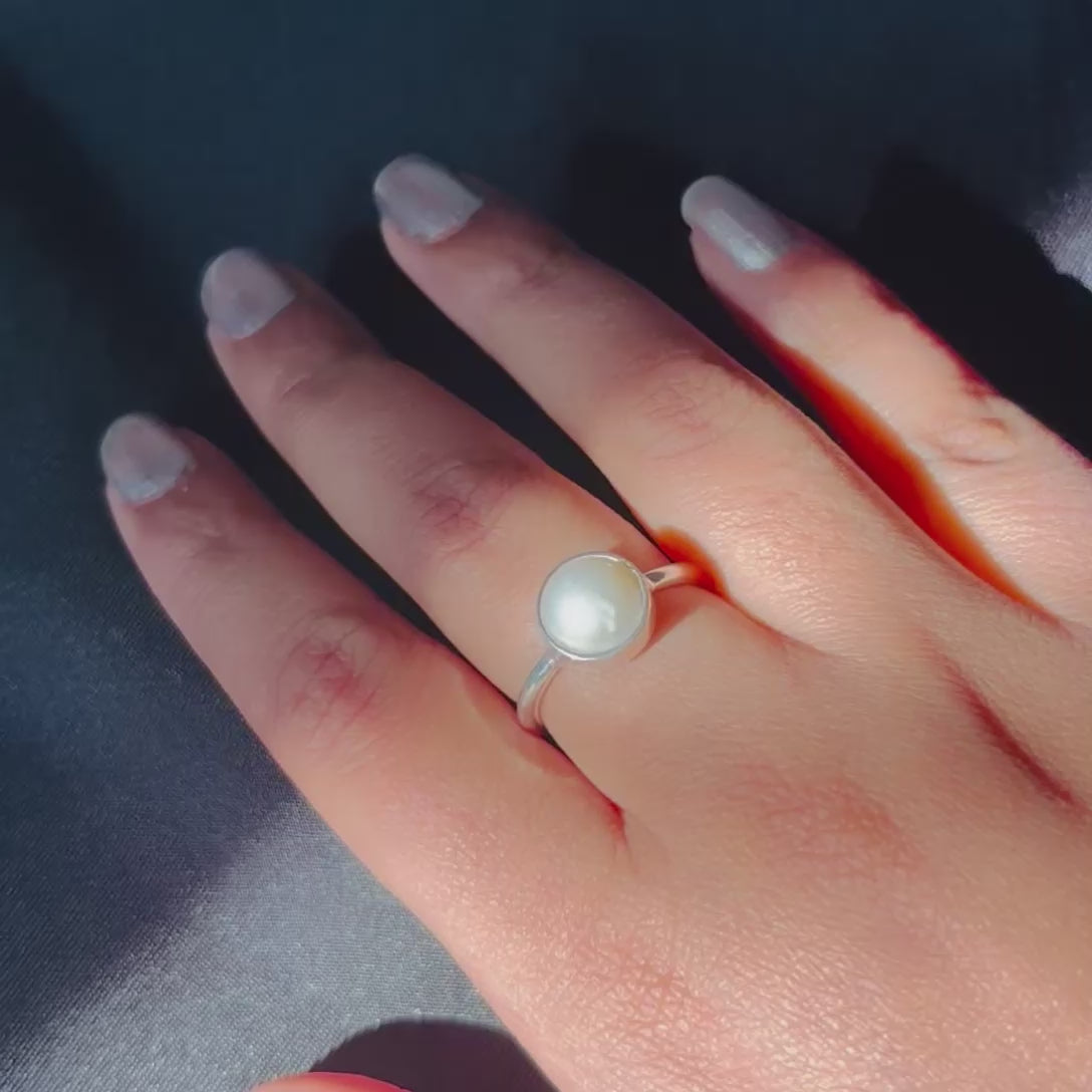 A 925 sterling silver pearl ring embodies classic elegance, with its luminous pearl symbolizing purity and wisdom. Set in sterling silver, it offers a timeless blend of sophistication and durability.