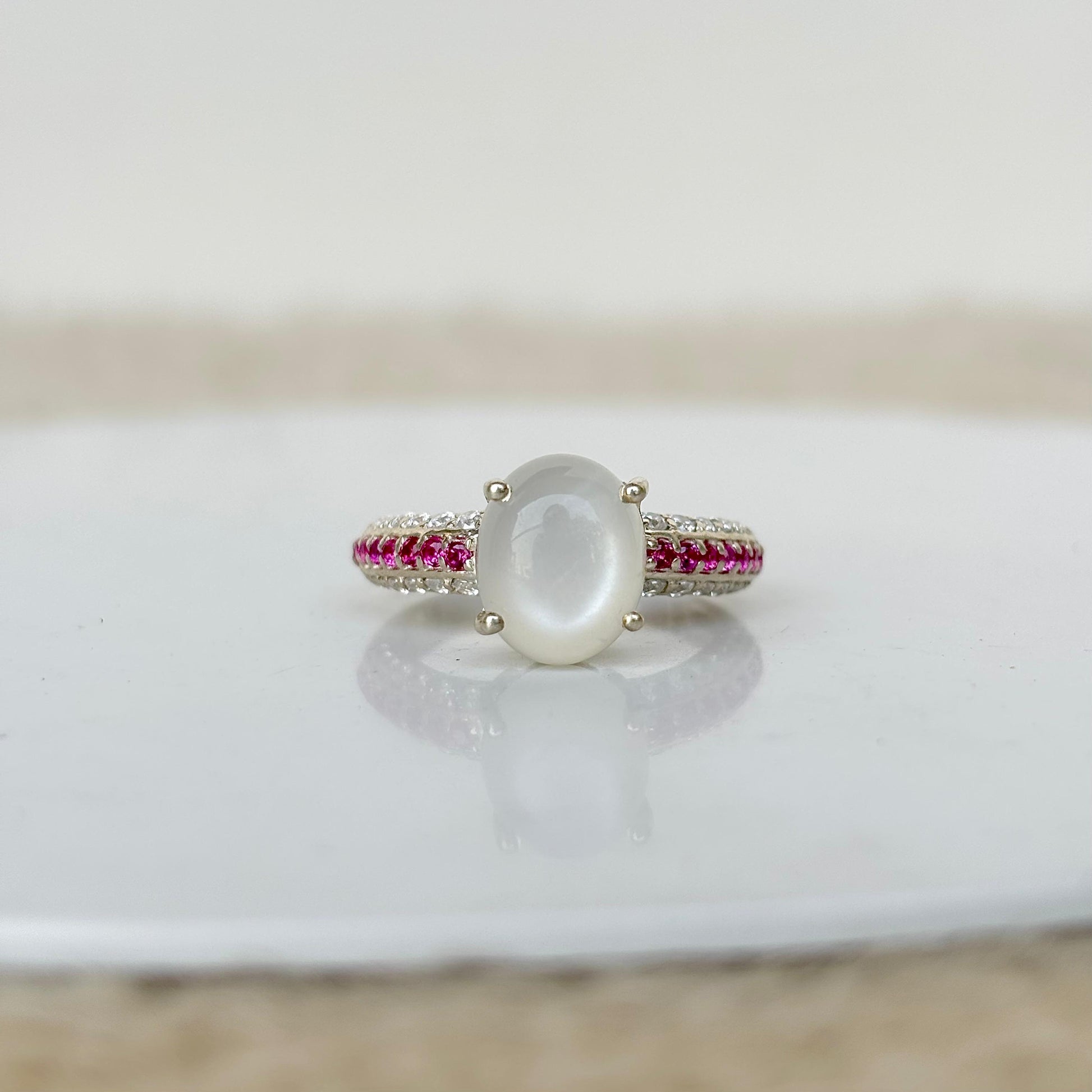 Elevate her style with this Flawless Rainbow Moonstone June Birthstone Oval Cut 925 Sterling Silver Ring, a unique gift for her. Crafted with precision, this captivating piece exudes elegance and charm.