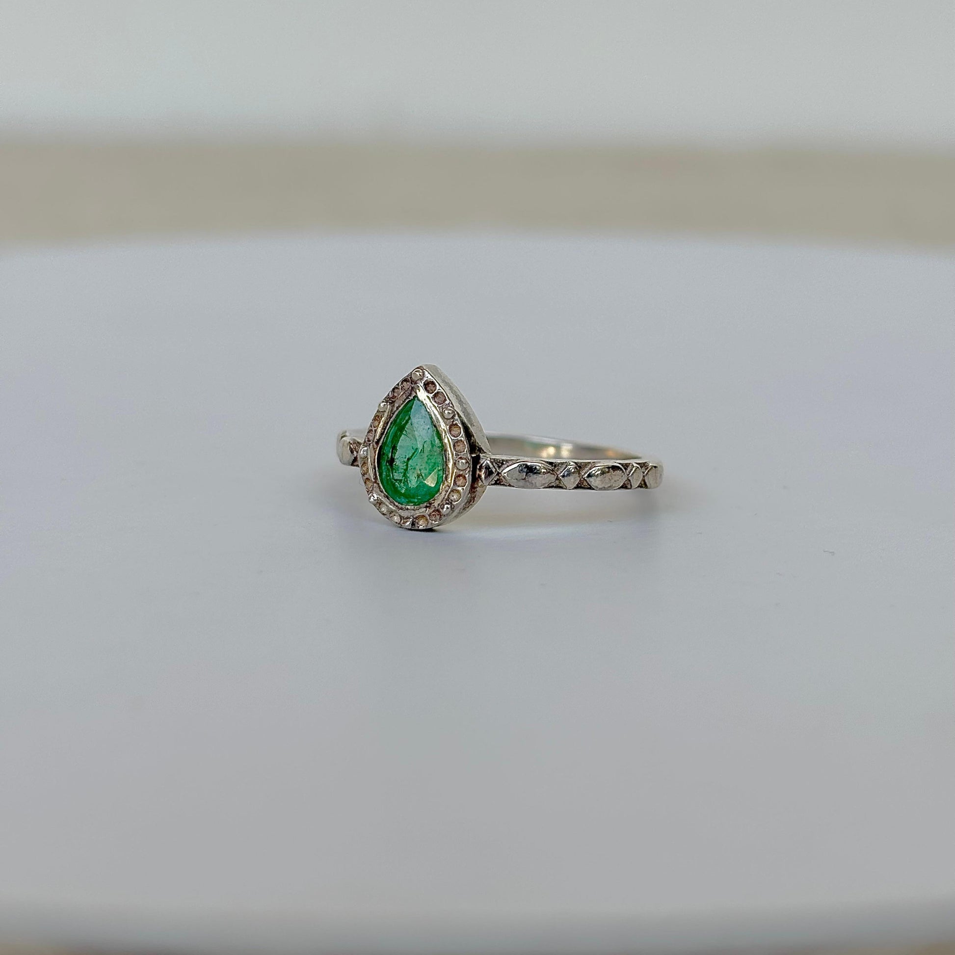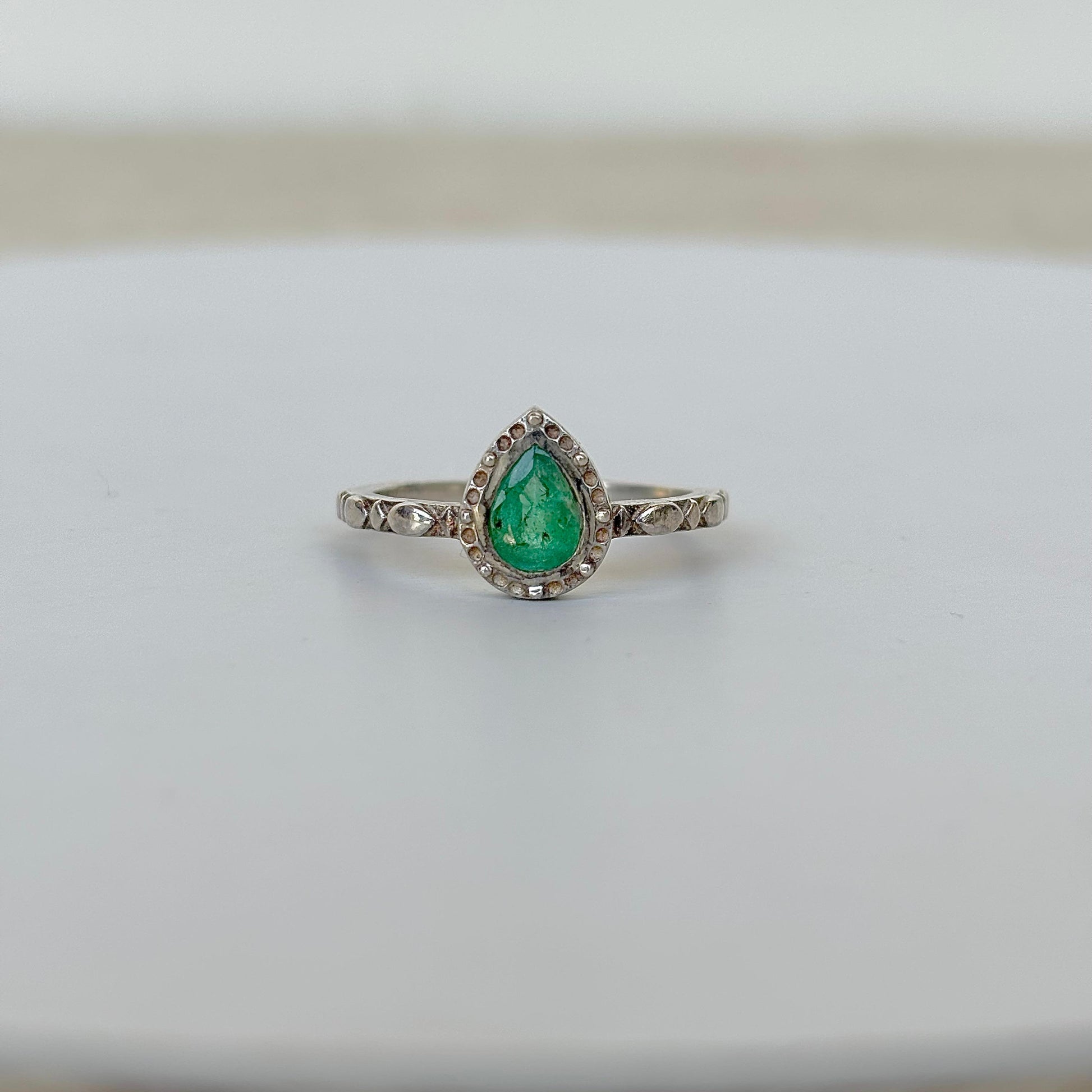 925 Pure Silver Natural Emerald Pear Cut Gemstone Dainty Ring