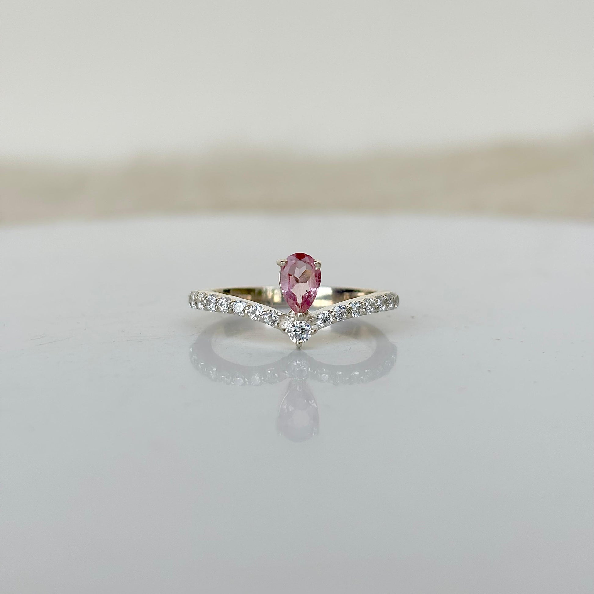 925 Pure Silver Natural Pink Tourmaline Crown Ring