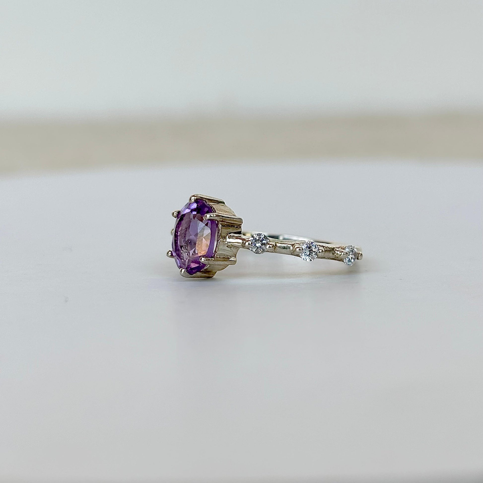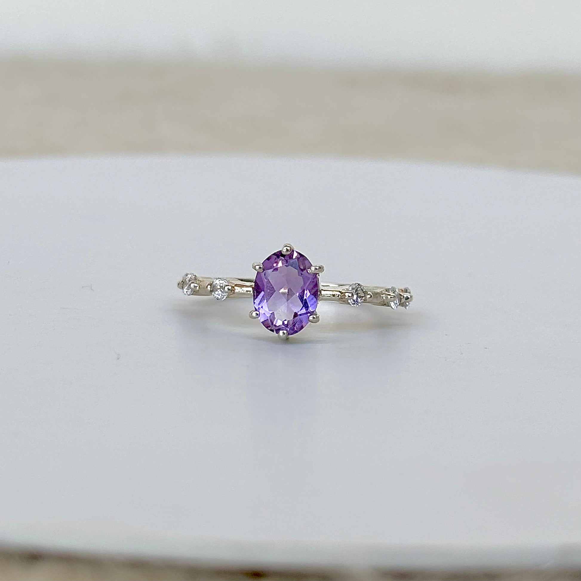 925 Pure Silver Oval Cut Natural Amethyst Solitaire Ring February Birthstone Gift For Her