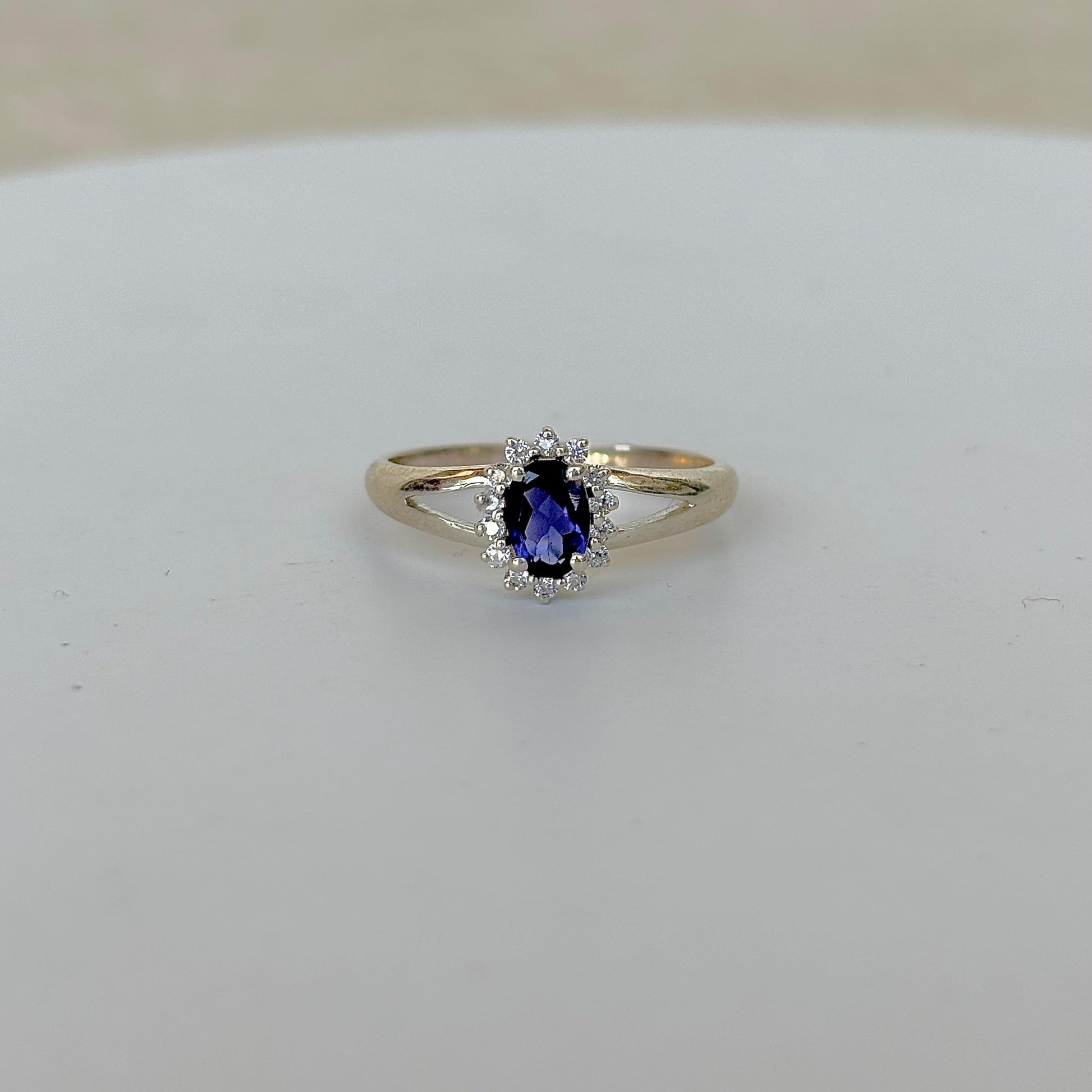 This stunning statement ring features a captivating oval-cut iolite gemstone set in lustrous 925 sterling silver, creating an enchanting piece that radiates elegance and charm.