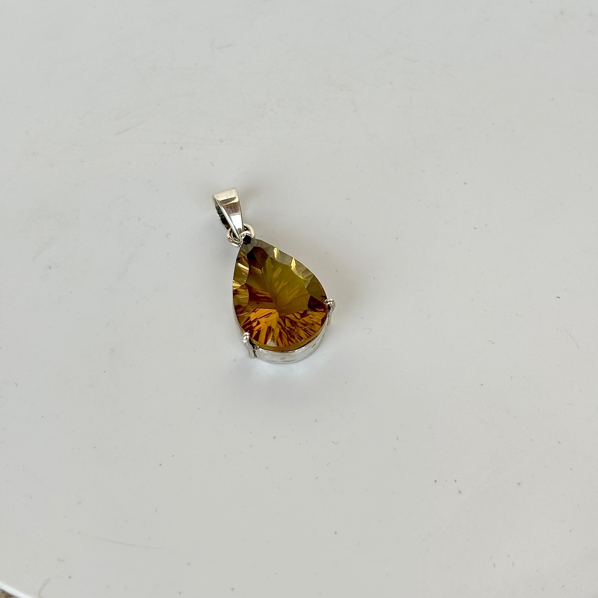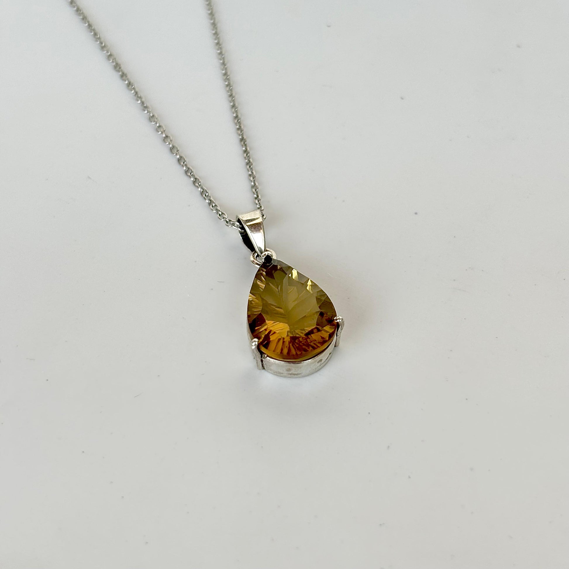 925 Pure Silver Pear Cut Natural Citrine Pendant Necklace