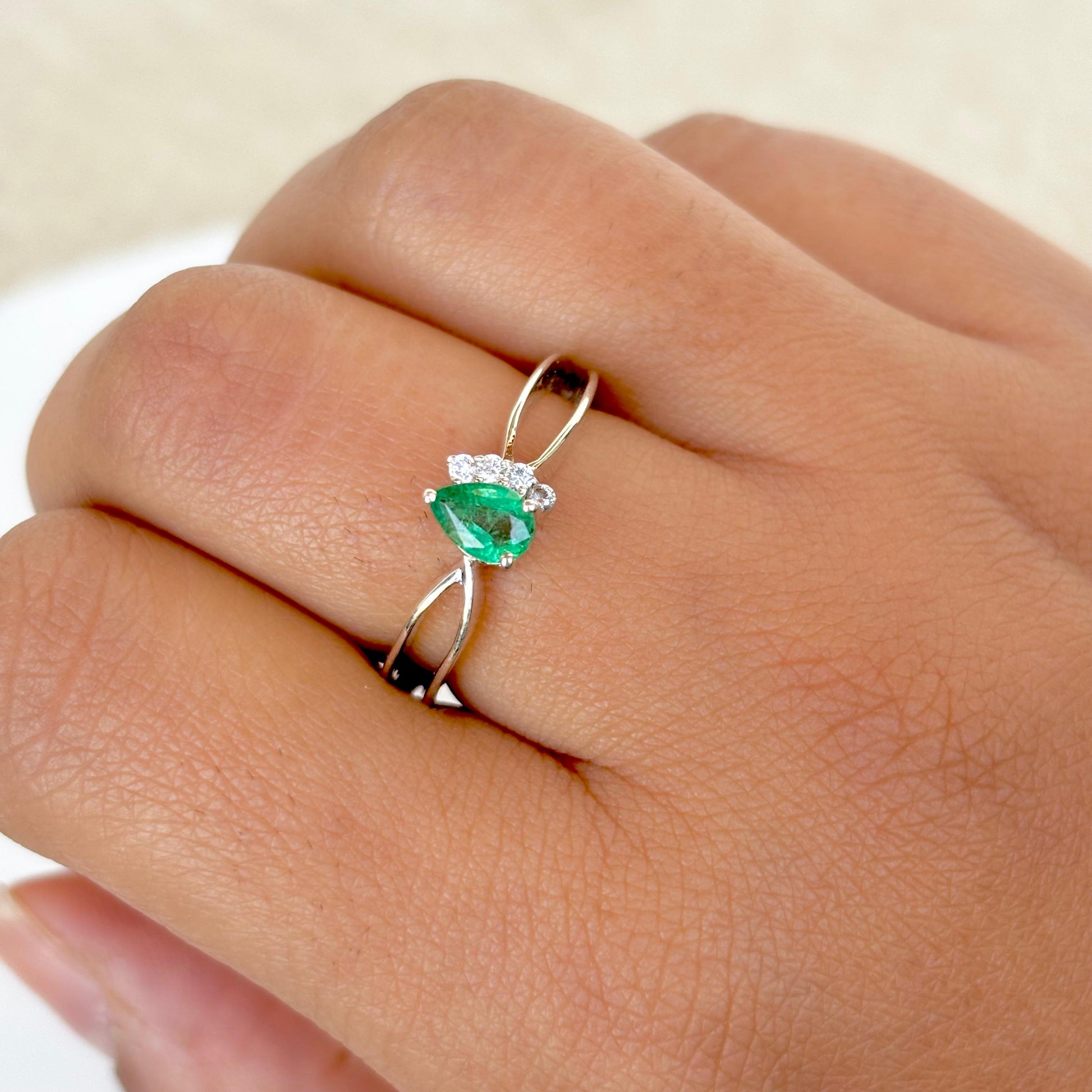 925 Pure Silver Pear Cut Natural Emerald Ring