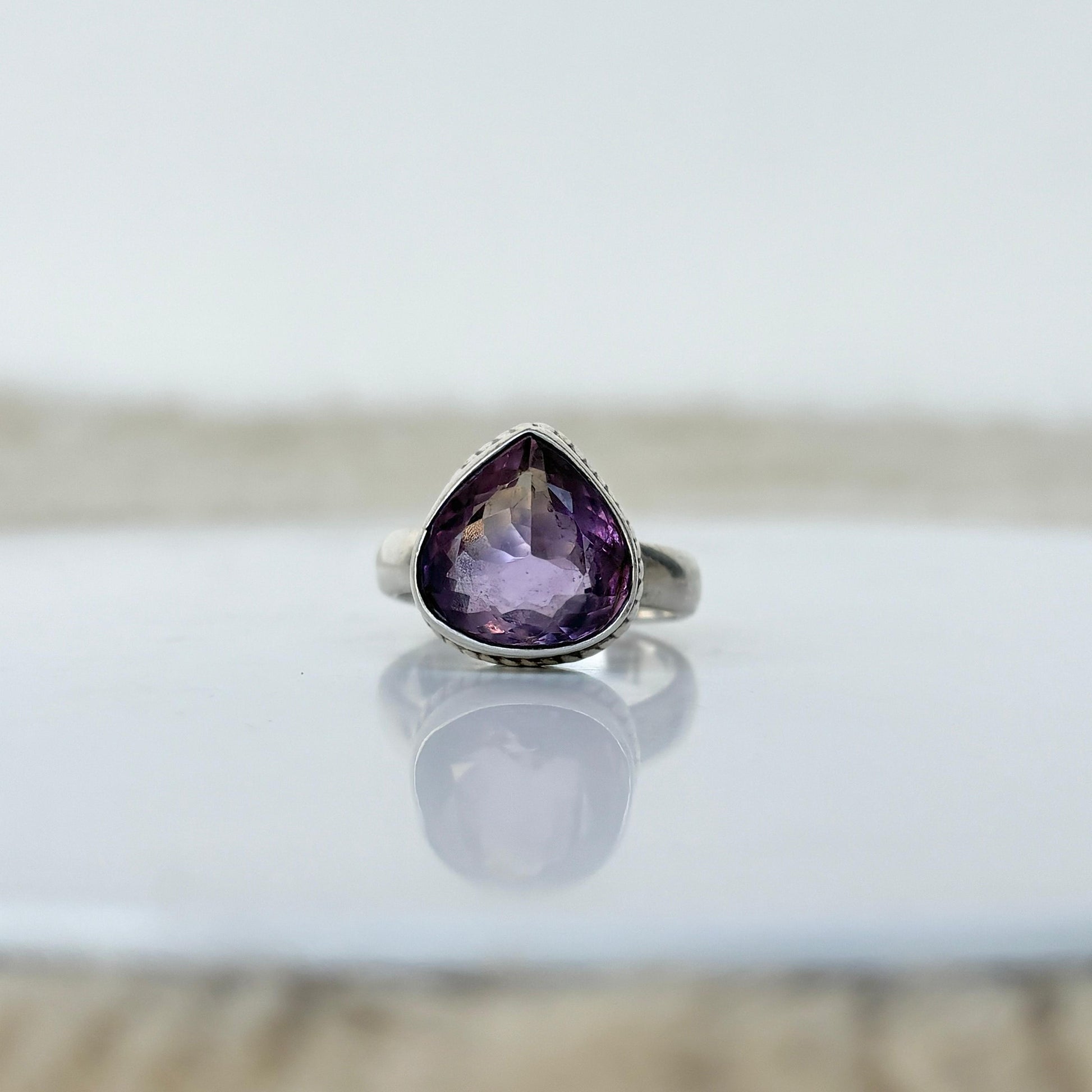 Natural Amethyst Ring Tear Drop 925 Pure Silver Ring