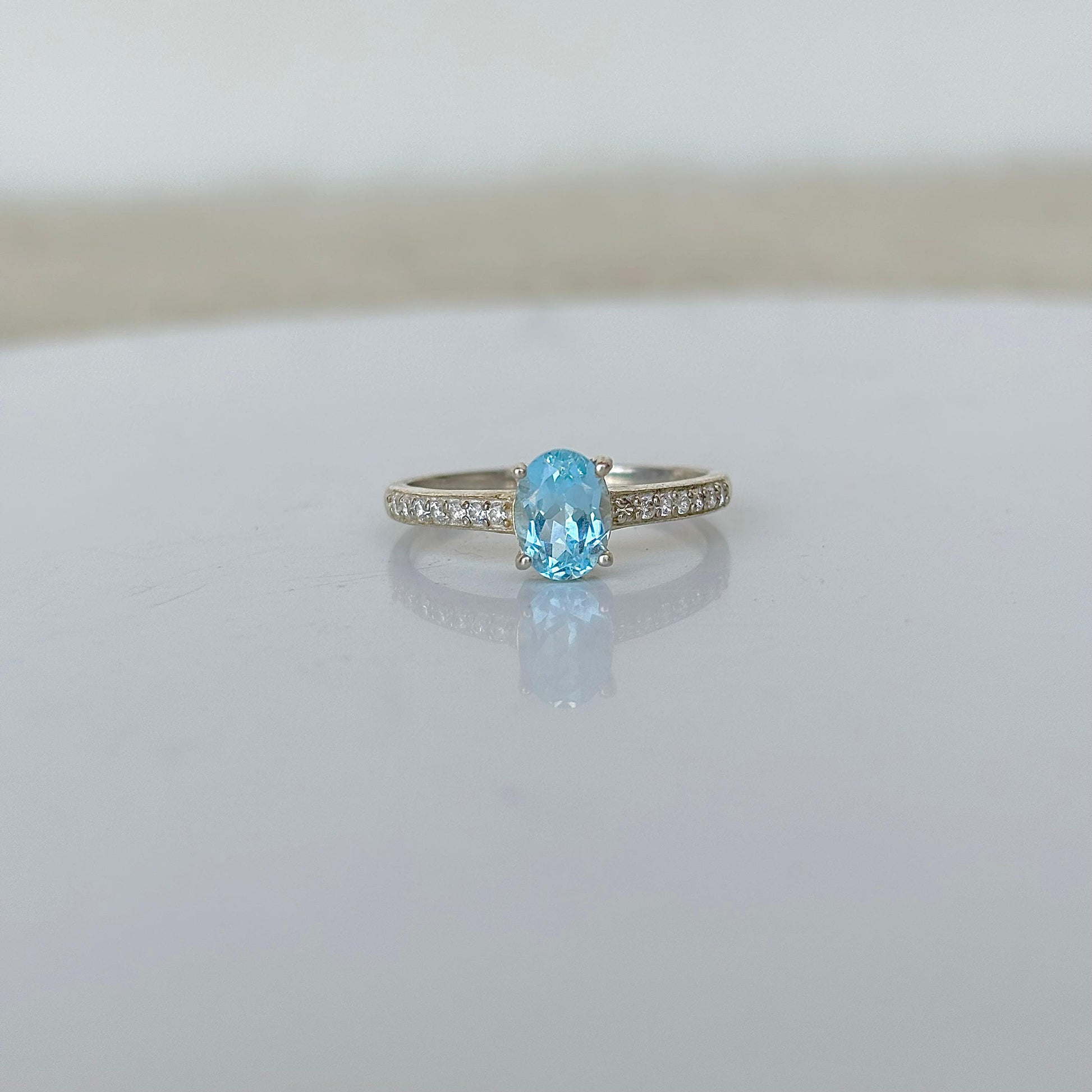 Embrace the beauty of the sky with our 925 Silver Natural Blue Topaz Ring for Her. This enchanting piece features a stunning, genuine blue topaz, known for its serene blue hue and association with clarity and calm.