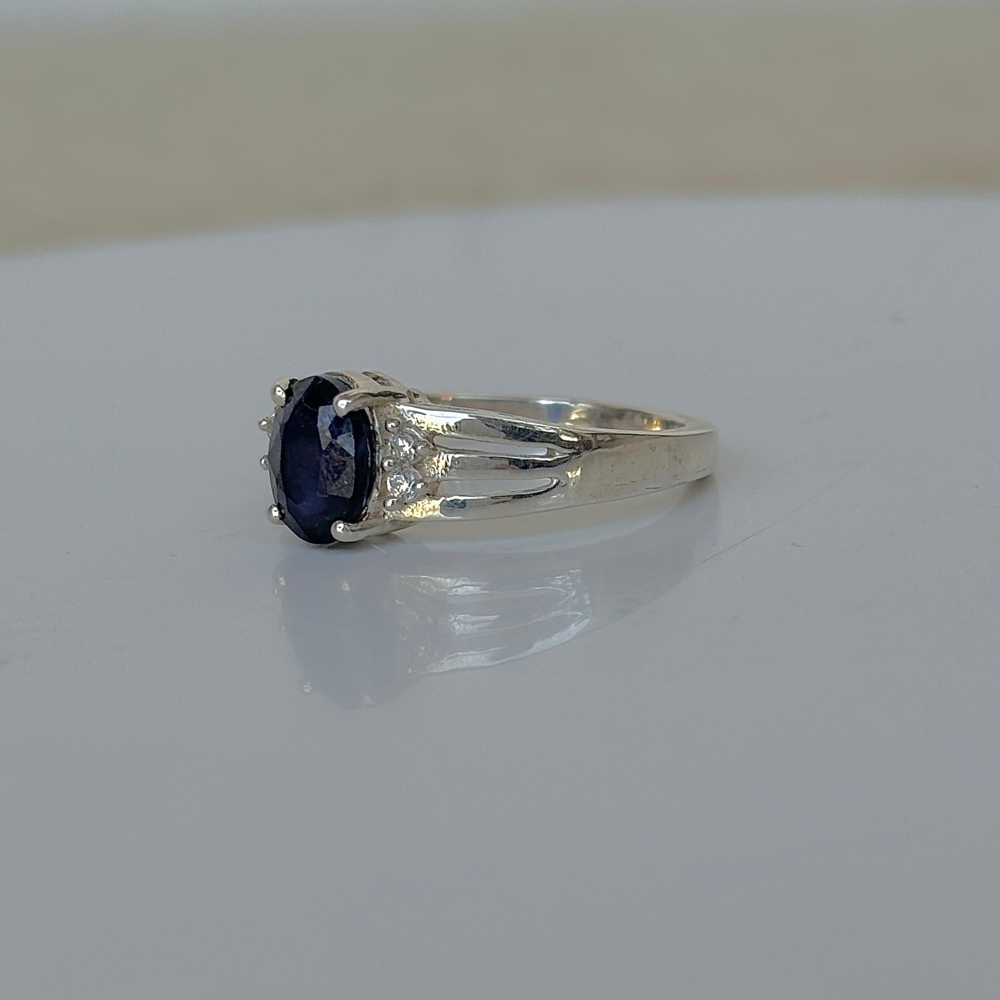 Natural Blue Sapphire Oval Cut 925 Pure Silver Statement Ring