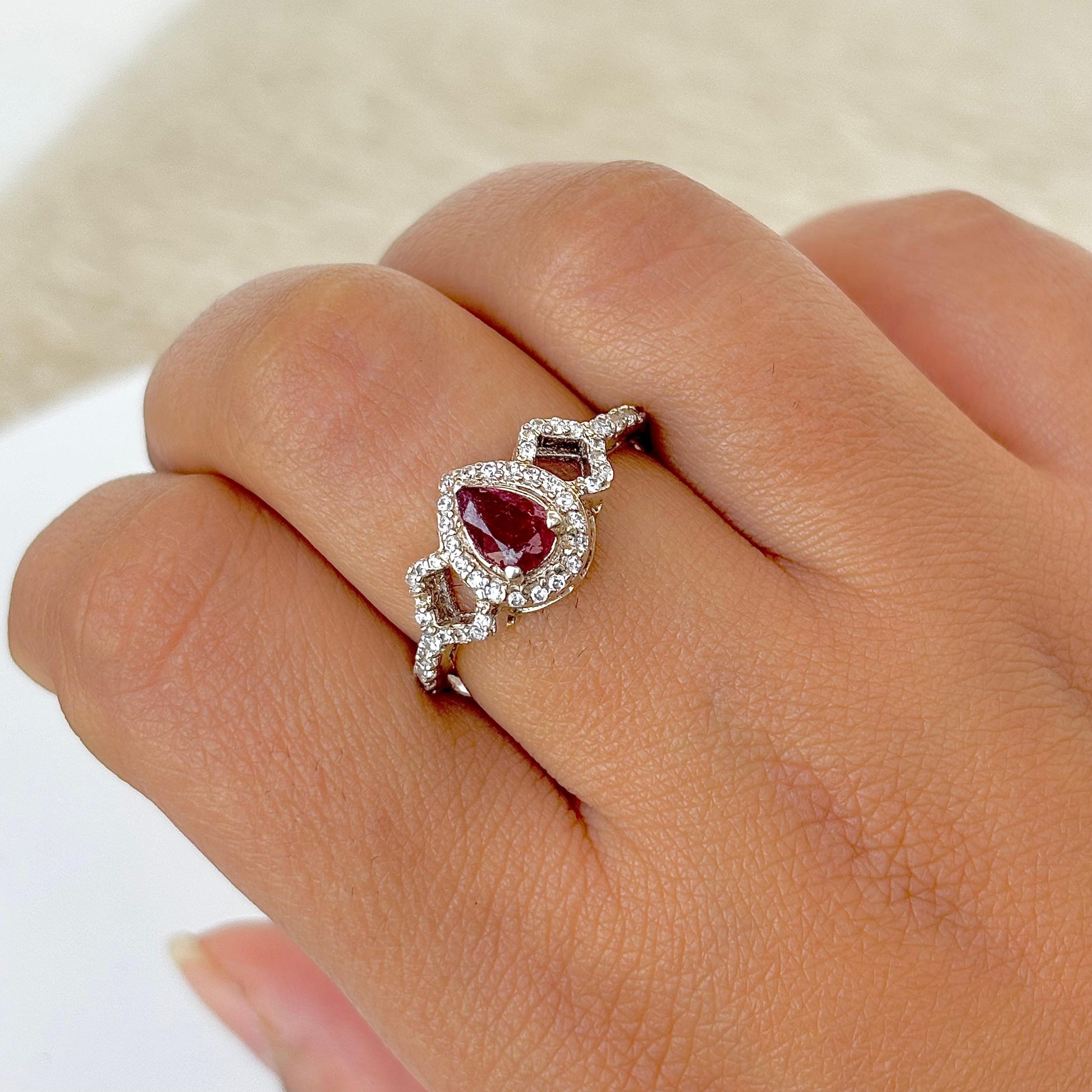 Radiant Natural Ruby Pear Cut 925 Pure Silver Statement Ring Memorable Gift For Her