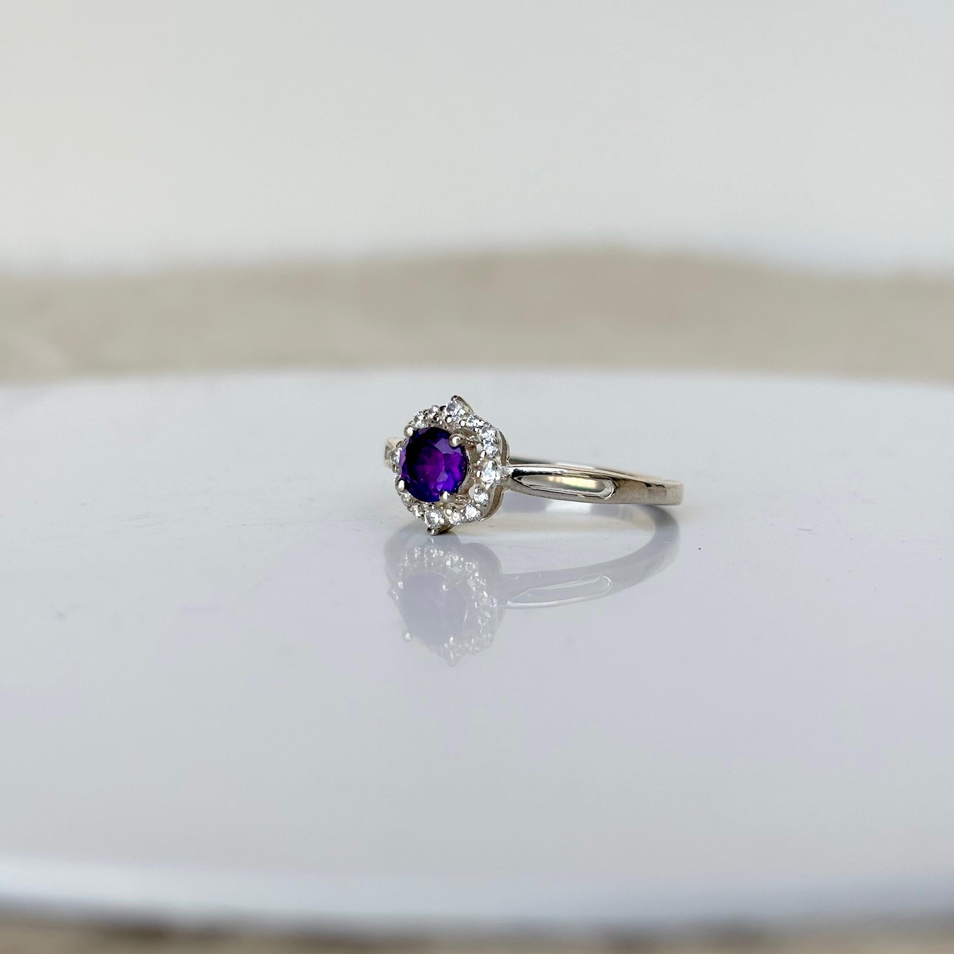 Elevate your look with this exquisite 925 Sterling Silver Round Amethyst Ring. Crafted to perfection, this stunning piece boasts the rich, deep hue of the February birthstone, exuding elegance and charm.