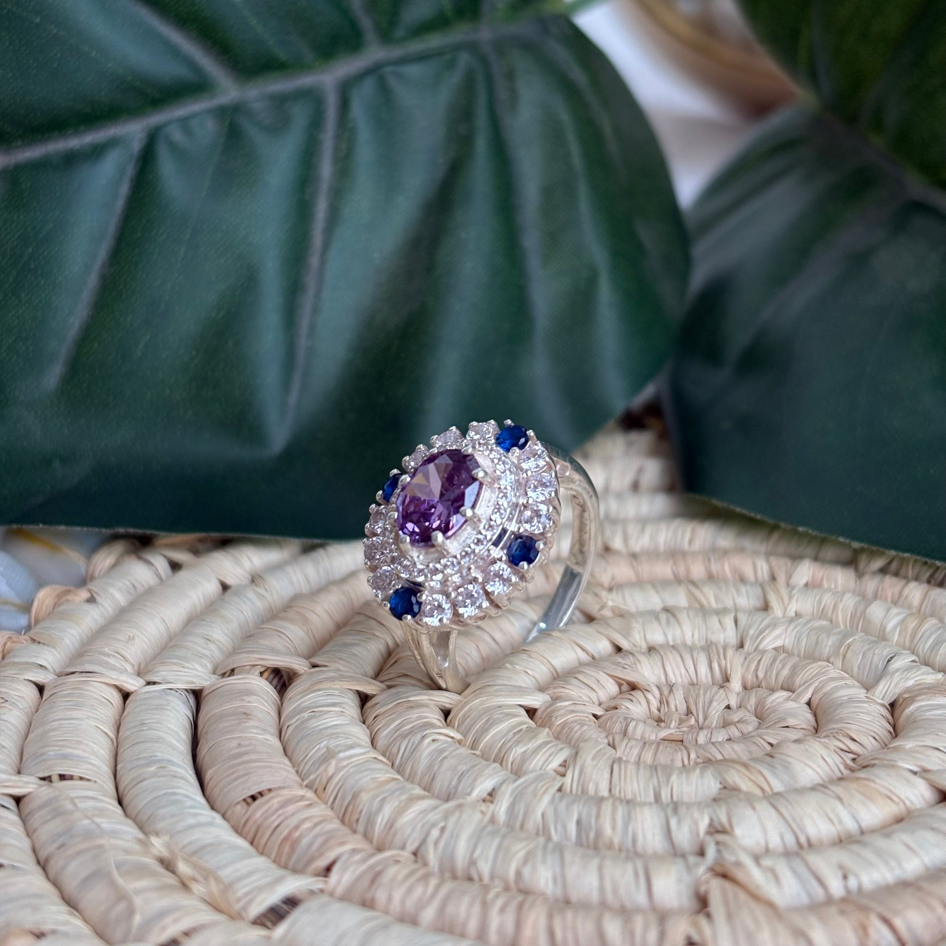 Elevate your love with our 925 Sterling Silver Natural Amethyst Statement Ring. This exquisite piece features a stunning natural Amethyst, the February birthstone, set in lustrous silver.